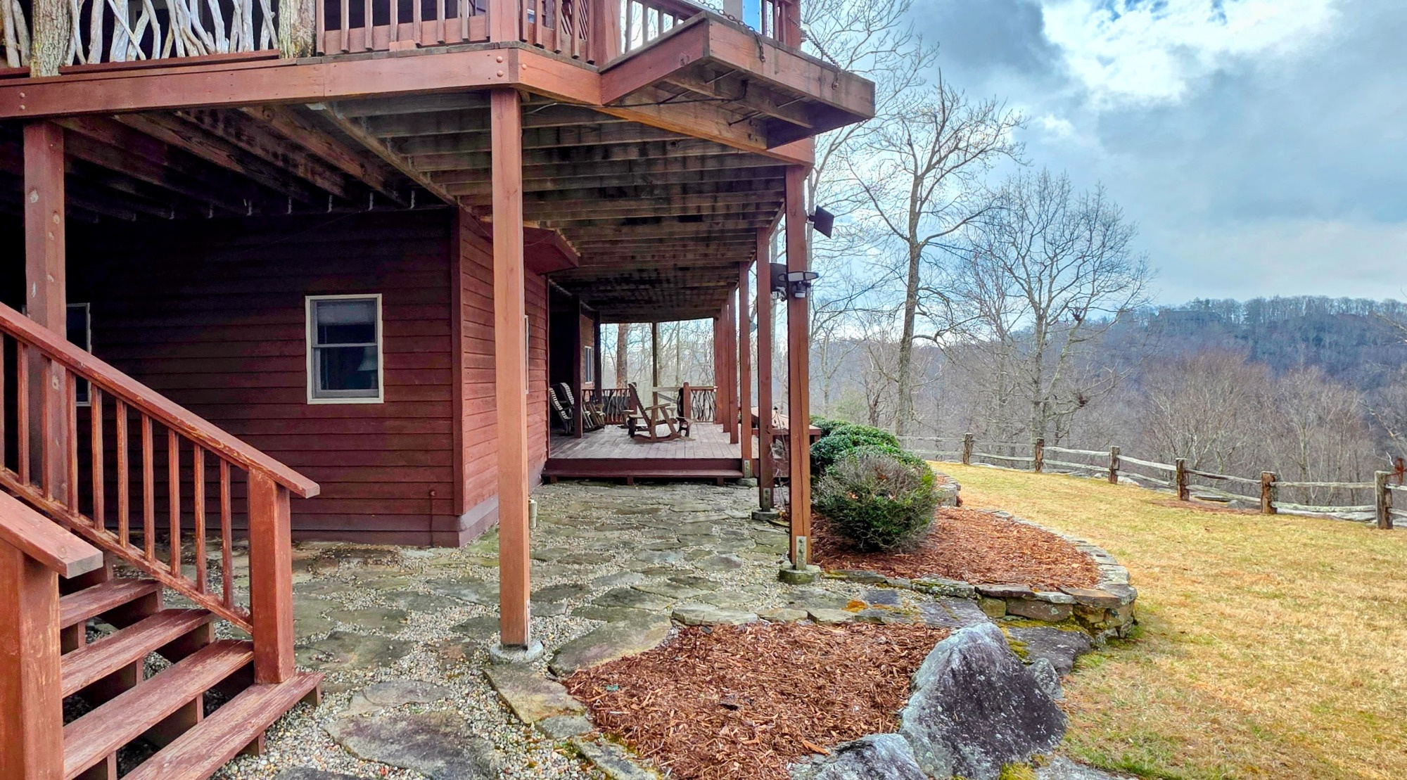Incredible cedar estate @ 4100' in Heart of Bald Rock. Great floor plan with Huge Panoramic Mountain Views. Plenty of cleared level land just minutes ride to incredible Panthertown Preserve. Lightly Furnished. Features massive vaulted ceilings with wall of windows & tons of decking to bring outside in. Mature Landscape, 3 Car Garage, Workshop, built-ins & bonus rooms. Spectacular family estate property fully furnished ready to move in. Exterior has been totally repainted, w/new fencing landscaping. Within minutes of (6700 acre Panthertown National Forest. Home offers space galor w/3 bedrooms upstairs, master on main, 2 bonus rooms in spacious lower family area w/wet bar fireplace. Granite countertops, hardwood floors, tile showers floor. Great property @ great price in Heart of Bald Rock. SV Resort Amenities. Access to Bald Rock trails, Equestrian Center, Common Areas, Panthertown access trailhead, Divide Pavilion included. Walk out basement to cleared level land. 3rd garage underneath Fireplace Features: 2 or more